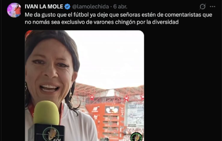 «Me da gusto que el fútbol ya deje que señoras estén de comentaristas que no nomás sea exclusivo de varones chingón por la diversidad», escribió a través de su X oficial e inmediatamente recibió una lluvia de críticas, donde defienden a la respetada periodista de futbol en México.
